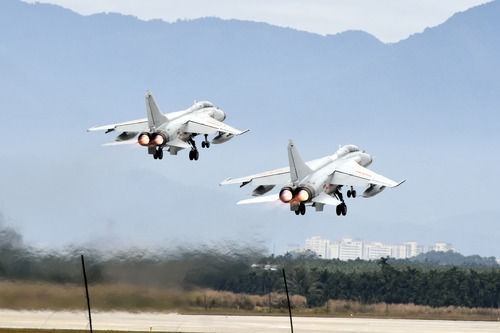 1月5日,南部战区海军航空兵某旅组织新年度首次飞行训练。这是双机起飞。新华社发(赖伟 摄)