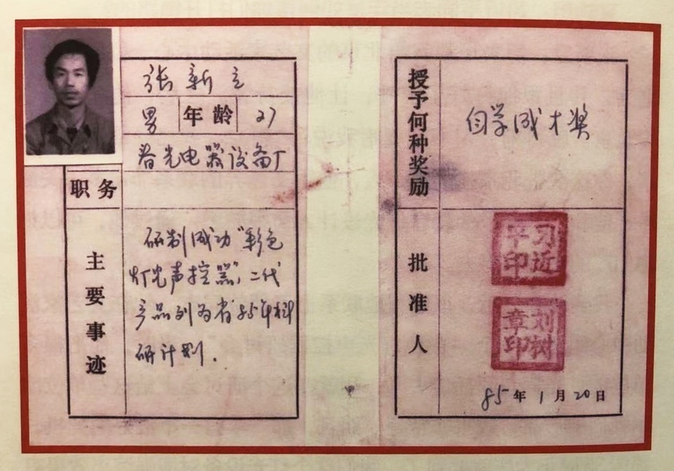 1985年1月20日,习近平为张新立颁发了“自学成才奖”,鼓励他自主创新。