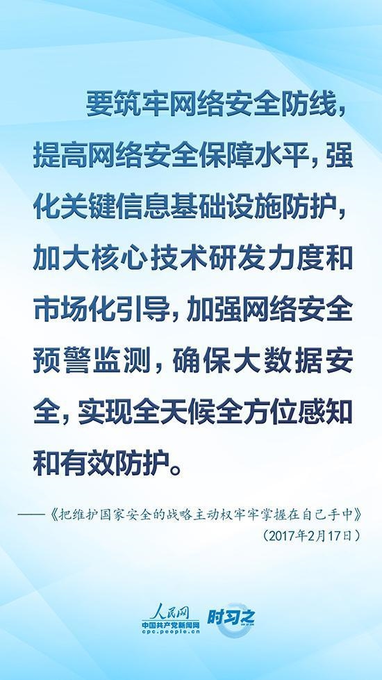 党的十八大以来,以习近平同志为核心的党中央从进行具有许多新的历史特点的伟大斗争出发,重视互联网、发展互联网、治理互联网,统筹协调涉及政治、经济、文化、社会、军事等领域网络安全和信息化重大问题,作出一系列重大决策、实施一系列重大举措,推动我国网信事业取得历史性成就,走出一条中国特色治网之道。人民网·中国共产党新闻网“时习之”栏目撷取了《习近平关于网络强国论述摘编》中有关“维护国家网络安全”的10句金句,以飨读者。