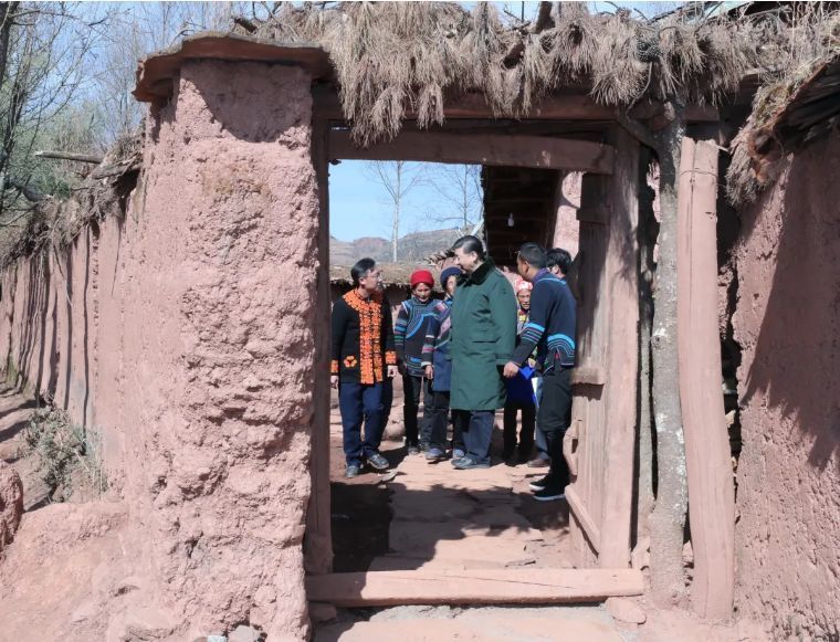 ↑2020年1月19日,习近平在云南腾冲市清水乡三家村中寨司莫拉佤族村村民李发顺家察看,了解居住环境。
