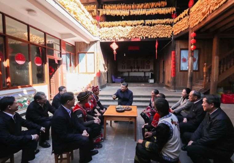 ↑2020年1月19日,习近平在云南腾冲市清水乡三家村中寨司莫拉佤族村,同村民李发顺一家聊家常,详细询问脱贫情况。