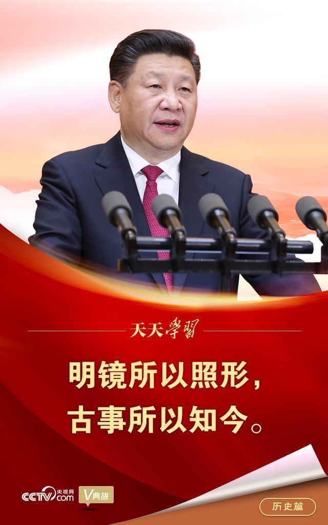 历史是一面镜子,习近平总书记多次提到中国传统文化中的“镜子论”。早在2004年,他在文章中就指出:“小事小节是一面镜子,能够反映人品,反映作风。”2013年他在参加河北省委常委班子专题民主生活会时,引用了王粲《仿连珠》中的一段话:“观于明镜,则疵瑕不滞于躯;听于直言,则过行不累乎身。”2016年,习近平总书记在中国文联十大、中国作协九大开幕式上的讲话中指出:“历史是一面镜子,从历史中,我们能够更好看清世界、参透生活、认识自己;历史也是一位智者,同历史对话,我们能够更好认识过去、把握当下、面向未来。‘观古今于须臾,抚四海于一瞬’。”