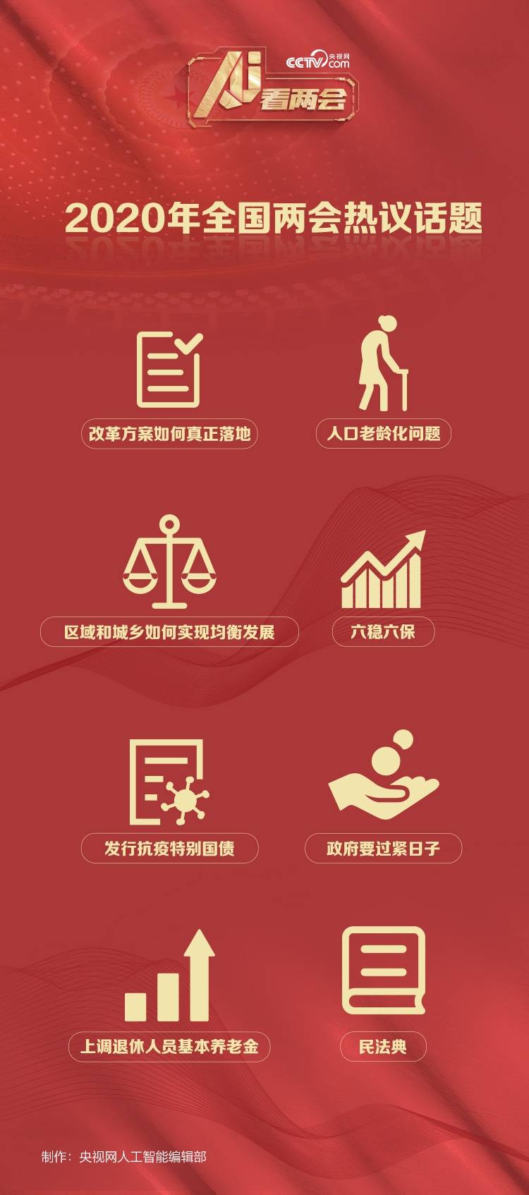 特殊之年的全国两会,政府要过紧日子、发行抗疫特别国债、上调退休人员基本养老金、房住不炒、减税降费等成为全网关注度较高的话题。此外,在全面建成小康社会的冲刺阶段,“改革方案如何真正落地”“人口老龄化问题”“区域和城乡如何实现均衡发展”“六稳六保”等成为2020年全国两会广大网民关注的民生热点。