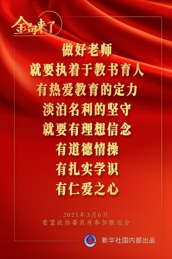 集中力量开展关键核心技术攻关,加快解决一批药品、医疗器械、医用设备、疫苗等领域“卡脖子”问题;依法严厉打击医闹和暴力伤医行为;有高质量的教师,才会有高质量的教育……3月6日下午,习近平总书记在看望参加全国政协十三届四次会议的医药卫生界、教育界委员并参加联组会时,讲了这些重要观点。一起来学金句。