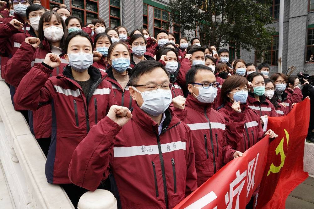 ↑2020年2月7日,四川大学华西医院派出131名队员奔赴武汉支援。