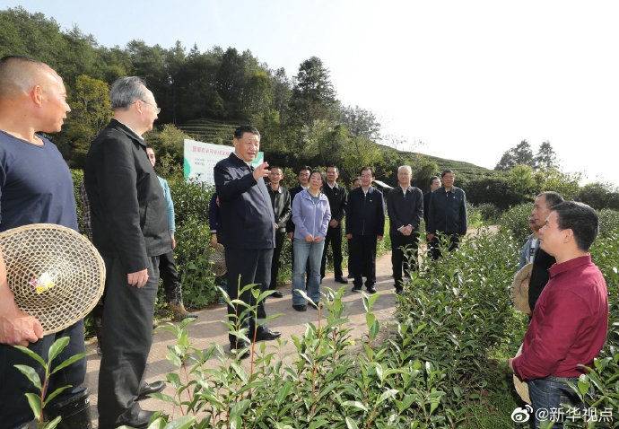 【习近平察看武夷山春茶长势:把茶文化、茶产业、茶科技这篇文章做好】22日下午,正在福建考察调研的习近平总书记,来到武夷山市星村镇燕子窠生态茶园,察看春茶长势,了解当地茶产业发展情况。听说近年来在科技特派员团队指导下,茶园突出生态种植,提高了茶叶品质,带动了茶农增收,习近平十分高兴。他指出,武夷山这个地方物华天宝,茶文化历史久远,气候适宜、茶资源优势明显,又有科技支撑,形成了生机勃勃的茶产业。要很好总结科技特派员制度经验,继续加以完善、巩固、坚持。要把茶文化、茶产业、茶科技统筹起来,过去茶产业是你们这里脱贫攻坚的支柱产业,今后要成为乡村振兴的支柱产业。(文字记者:张晓松、朱基钗;摄影记者:鞠鹏、王晔、燕雁)
