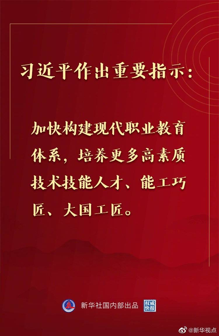 习近平总书记近日对职业教育工作作出重要指示强调,在全面建设社会主义现代化国家新征程中,职业教育前途广阔、大有可为。要坚持党的领导,坚持正确办学方向,坚持立德树人,优化职业教育类型定位,深化产教融合、校企合作,深入推进育人方式、办学模式、管理体制、保障机制改革,稳步发展职业本科教育,建设一批高水平职业院校和专业,推动职普融通,增强职业教育适应性,加快构建现代职业教育体系,培养更多高素质技术技能人才、能工巧匠、大国工匠。各级党委和政府要加大制度创新、政策供给、投入力度,弘扬工匠精神,提高技术技能人才社会地位,为全面建设社会主义现代化国家、实现中华民族伟大复兴的中国梦提供有力人才和技能支撑。