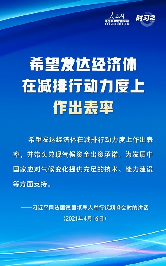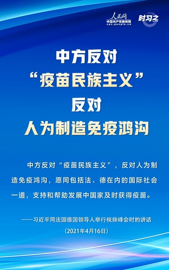 【编者按】4月16日下午,国家主席习近平在北京同法国总统马克龙、德国总理默克尔举行中法德领导人视频峰会。三国领导人就合作应对气候变化、中欧关系、抗疫合作以及重大国际和地区问题深入交换意见。人民网・中国共产党新闻网“时习之”栏目摘录了习近平在这次视频峰会上的重要讲话内容,一起学习。