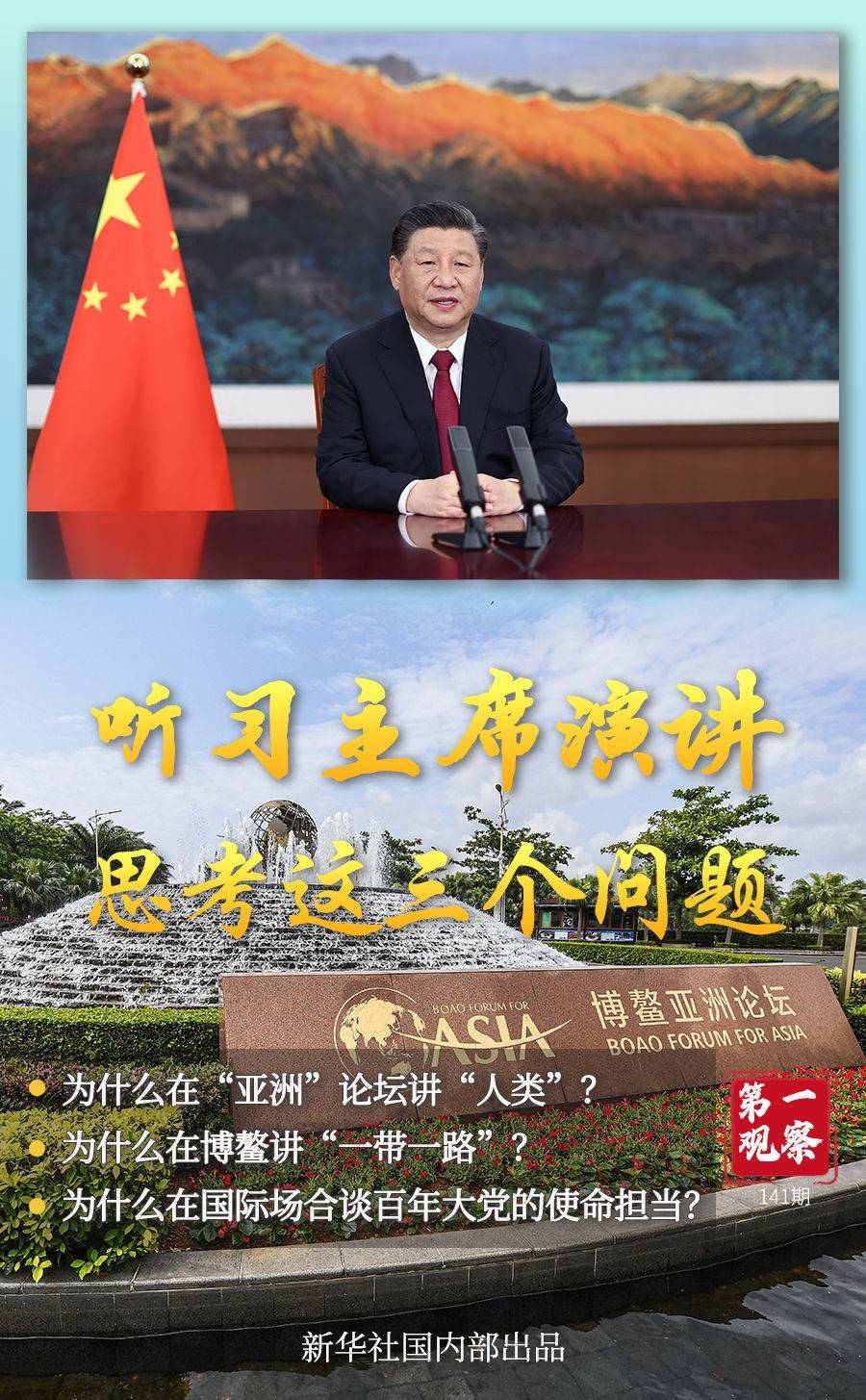 第三个问题,为何在博鳌这个国际场合谈百年大党的使命担当?