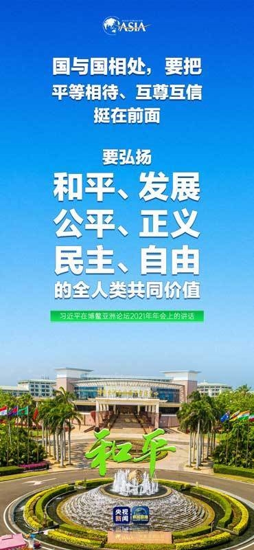2021年4月20日,习近平主席在博鳌亚洲论坛2021年年会开幕式上通过视频发表主旨演讲,合作、开放等高频词贯穿演讲全篇。