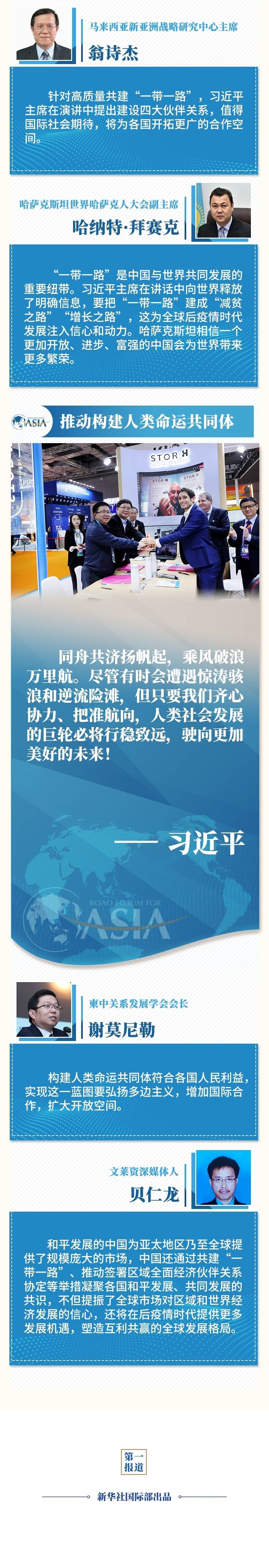新华社北京4月21日电 博鳌亚洲论坛2021年年会开幕式20日上午在海南博鳌举行,国家主席习近平以视频方式发表题为《同舟共济克时艰,命运与共创未来》的主旨演讲。多国人士表示,习近平主席的演讲着眼于人类共同利益,为各国携手共克疫情、加强全球治理、高质量共建“一带一路”、构建人类命运共同体注入新的强大动力。