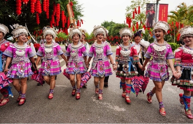 三月初三,人们穿上节日盛装,对唱山歌,祭祀先祖、制作五色糯米饭、染彩蛋、抢花炮……这不仅是壮族最有代表性的节庆活动之一,也是生活在广西的瑶、苗、侗、仫佬、毛南等世居民族的重要节日。2014年,“壮族三月三”被列入国家级非物质文化遗产名录。