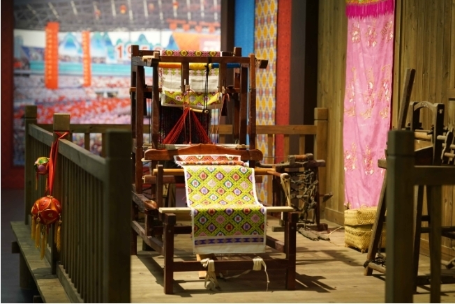 △广西民族博物馆中展示的织锦机(总台央广记者潘毅拍摄)