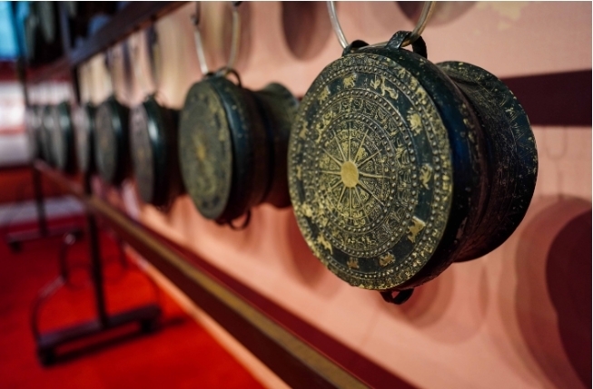 △广西民族博物馆内展示的壮族铜鼓(总台国广记者李晋拍摄)