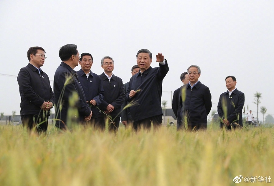 13日下午,正在河南考察的习近平总书记来到淅川县,先后考察了陶岔渠首枢纽工程、丹江口水库和九重镇邹庄村。习近平在赴渠首考察途中临时下车,走进一处麦田察看小麦长势。看到丰收在望,习近平指出,夏粮丰收了,全年经济就托底了。保证粮食安全必须把种子牢牢攥在自己手中。要坚持农业科技自立自强,从培育好种子做起,加强良种技术攻关,靠中国种子来保障中国粮食安全。