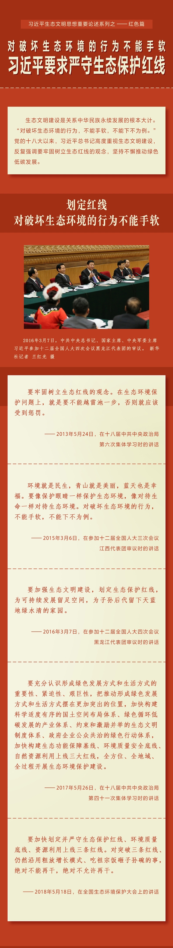 对破坏生态环境的行为不能手软 习近平要求严守生态保护红线