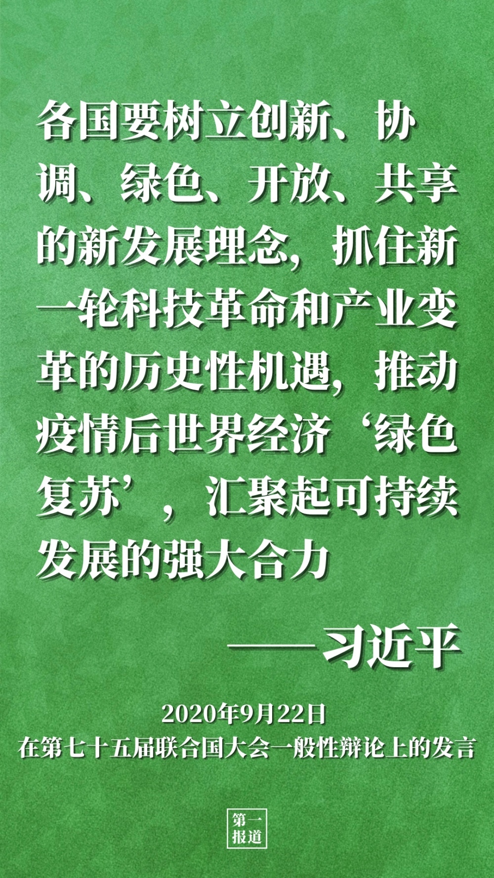 从全力推进实现碳达峰、碳中和目标,到携手各国应对气候变化,从推动各方共建绿色“一带一路”,到助力疫情后世界经济“绿色复苏”,中国是全球气候环境治理的坚定行动派,是全球生态文明建设的重要参与者、贡献者、引领者,向世界交出一份绿色答卷。
