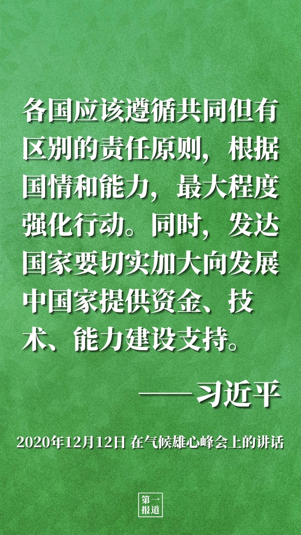 在2020年12月12日举行的气候雄心峰会上,习近平主席指出,在气候变化挑战面前,人类命运与共,单边主义没有出路。我们只有坚持多边主义,讲团结、促合作,才能互利共赢,福泽各国人民。