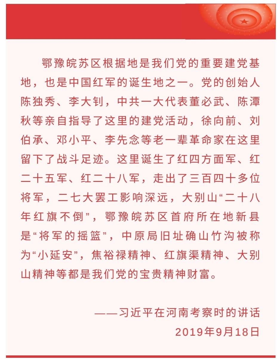 河南新县是将军的摇篮。土地革命时期,这里是黄麻起义的策源地、鄂豫皖革命根据地首府所在地,先后诞生了红四方面军等主力红军,走出了多位叱咤风云的共和国将军。