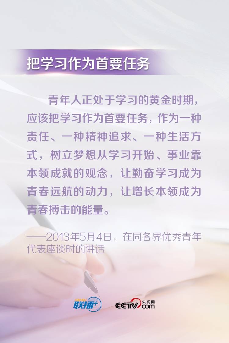 习近平总书记一直以来都十分关心青年成长成才,常常走近青年、倾听青年、鼓励青年。他说,“青年最富有朝气、最富有梦想”,“中华民族伟大复兴终将在广大青年的接力奋斗中变为现实”。央视网《联播+》特梳理总书记对广大青年的寄语,与您一起学习。