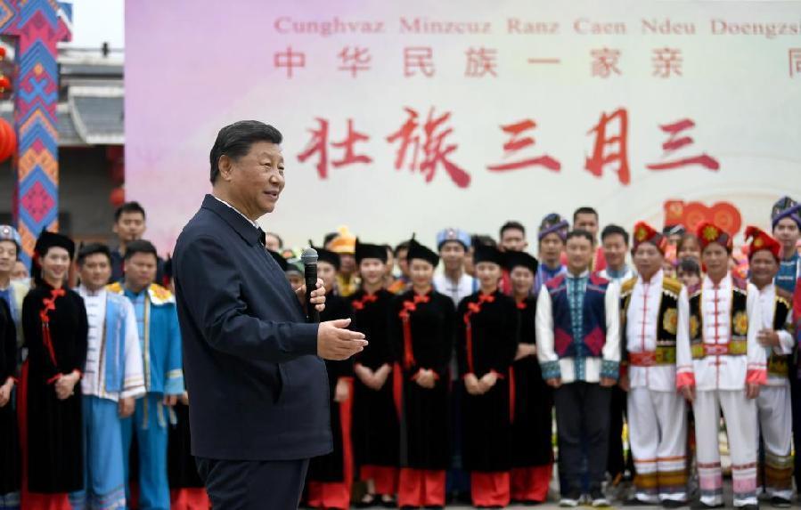 壮族三月三是国家级非物质文化遗产。2021年4月27日,习近平总书记来到南宁市广西民族博物馆,同参加三月三“歌圩节”壮族对歌等民族文化活动的各族群众亲切交流,共话美好未来。