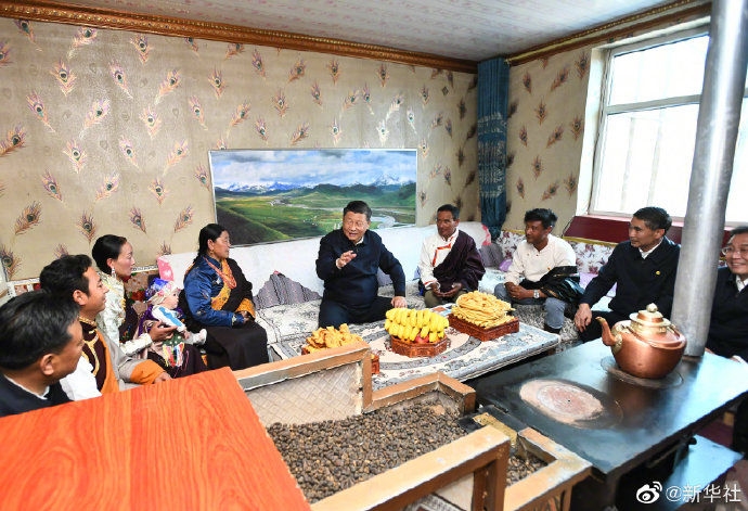 【为什么老百姓衷心拥护党?因为我们党始终全心全意为人民服务、为各民族谋幸福】8日下午,习近平总书记来到海北藏族自治州刚察县沙柳河镇果洛藏贡麻村,走进牧民索南才让家中,看望慰问藏族群众。索南才让说,牧民生活好,全靠党的政策好,衷心感谢党、衷心感谢总书记。习近平指出,我们党成立一百年了,为什么老百姓衷心拥护中国共产党?因为我们党始终全心全意为人民服务、为各民族谋幸福。我们一百年来取得的成绩,赢得了民心,在建设社会主义现代化国家新征程上,我们要走得更好。(文字记者:张晓松、朱基钗;摄影记者:李学仁、谢环驰)