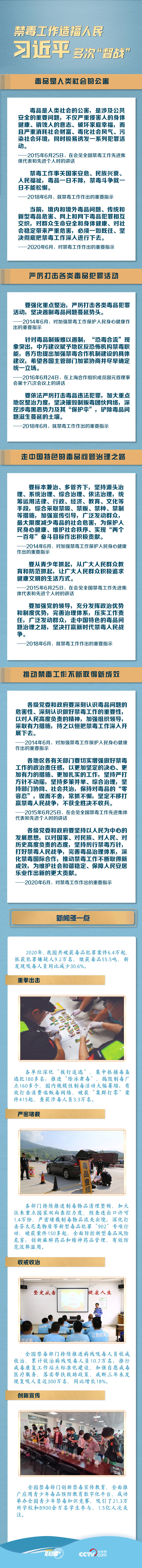 习近平总书记一直高度关注禁毒工作,近年来多次“督战”禁毒工作,将全民禁毒推升至新高度。各地区各部门认真贯彻落实中央关于禁毒工作的决策部署,深入开展禁毒斗争,取得了显著成效。