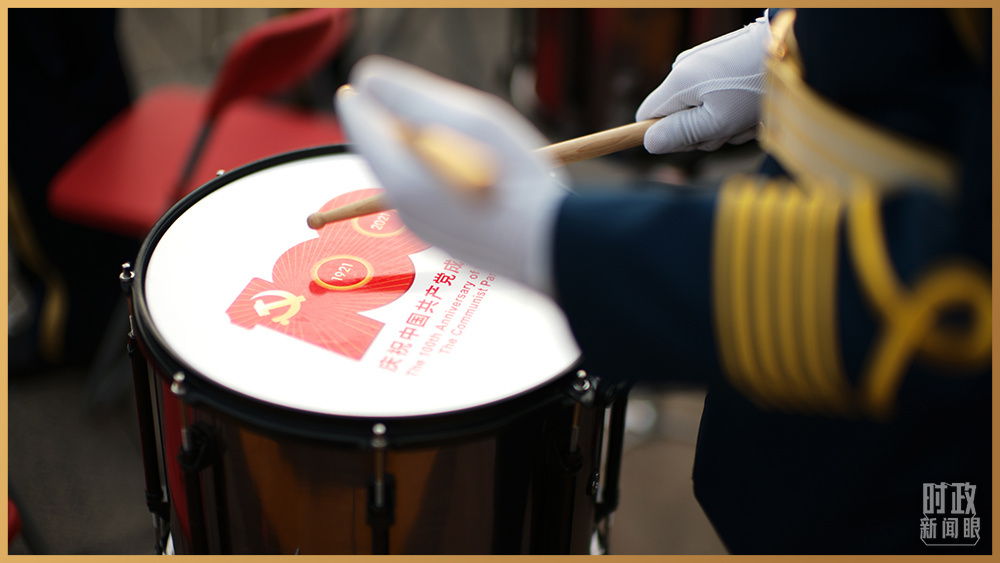 △ 鼓面上带有建党百年庆祝活动标识(总台央视记者彭汉明拍摄)