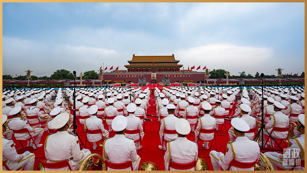△中国人民解放军联合军乐团静待演奏开始。(总台记者廖江衡拍摄)