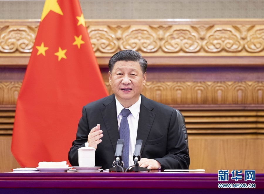 7月5日晚,国家主席习近平在北京同法国总统马克龙、德国总理默克尔举行视频峰会。新华社记者 岳月伟 摄