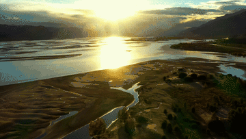 一会儿又静静地流淌于高山峡谷间