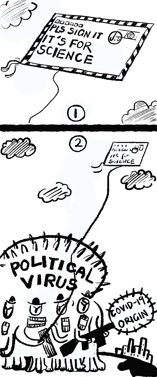 人们也注意到,许多理性科学家在美国受到一些阴谋论者和反华人士的围攻。例如,美国国家过敏与传染病研究所所长安东尼·福奇,因同美国右翼人士等意见不合而饱受攻击。美国国家医学院院士、美国国际生态健康联盟主席彼得·达萨克因为驳斥一些针对中国的不实攻击而受到美西方政客持续威胁和打压。还有理性的科学家由于遭受网络暴力而删除了社交媒体账号。(记者:颜亮、林小春;漫画作者:马则刚;编辑:刘阳、钱泳文)