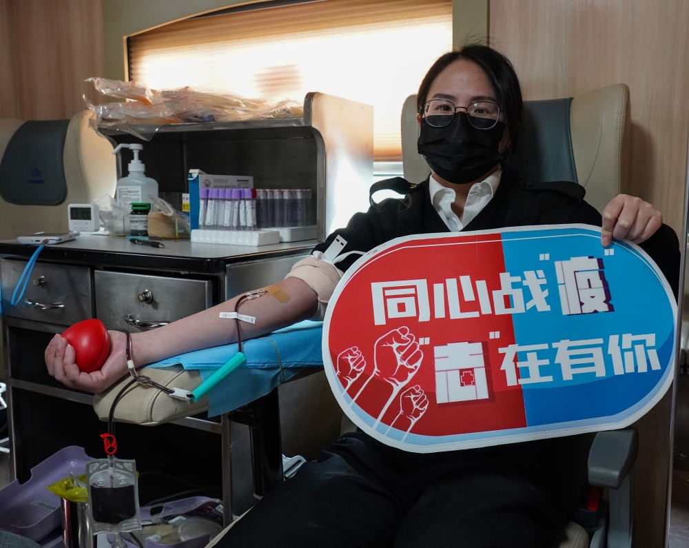 2020年3月5日,杭州海关青年关员在献血车上献血。新华社发(赵凡瑜 摄)