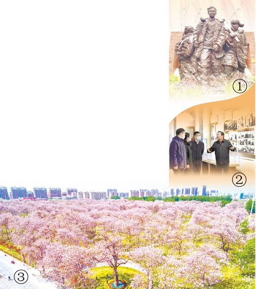 图①:焦裕禄同志纪念馆门前的雕塑。本报记者 张 洋摄