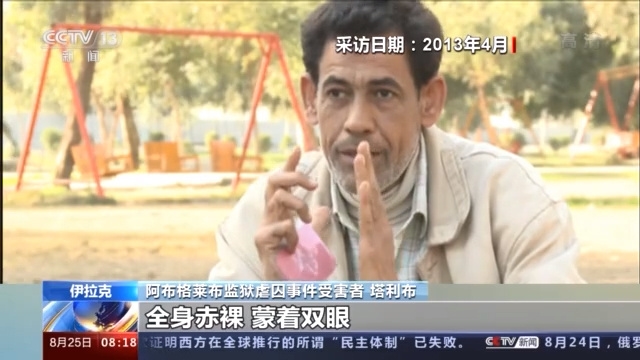 阿布格莱布监狱虐囚事件受害者 塔利布:我真的无法在你面前说这些,太令人尴尬了。一人贴着一人,一人叠着一人,全身赤裸,被蒙上双眼,堆叠在一起。全身赤裸,蒙着双眼,他们还把警犬带进牢房吓唬我们,拿走牢房里的被单和毯子。在我们赤身裸体的时候,用冷水冲洗牢房,那可是冬天,天气非常冷。