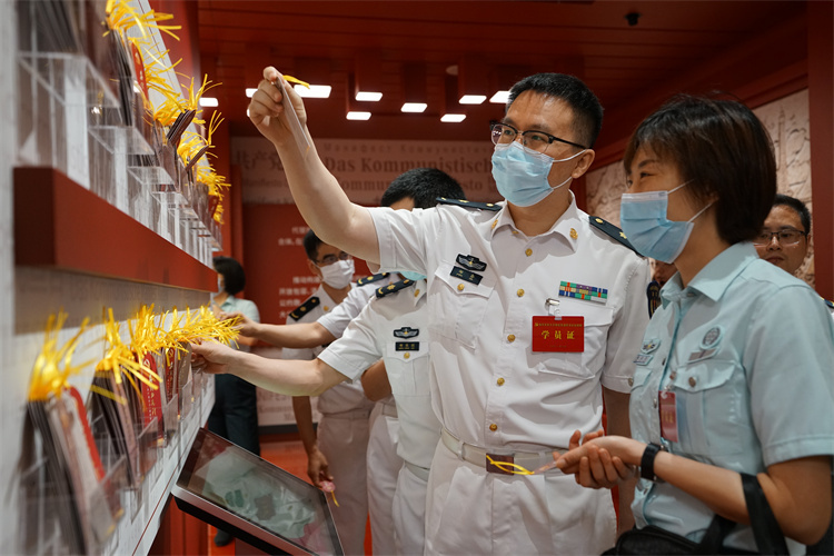 研究生学员罗嗣威和鹿晓天也参与了教学馆的建设,当他们看到令人震撼的版本墙时,感慨道:“以前听教员介绍《共产党宣言》的版本种类,只是一个数字,没有感觉。现在面对这么多种文字的版本,才意识到,这些不同语种的版本恰恰证明了《共产党宣言》的强大生命力和深远影响力,它不仅没有过时,反而历久弥新。”
