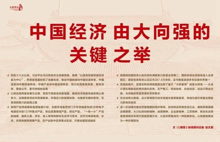 实施质量强国战略,建设质量强国,增强我国经济质量优势,已成为推动高质量发展、促进我国经济由大向强转变的关键之举。