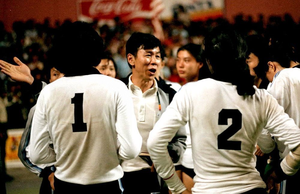 1982年9月20日,袁伟民在第九届女排世锦赛中指导女排队员。新华社发
