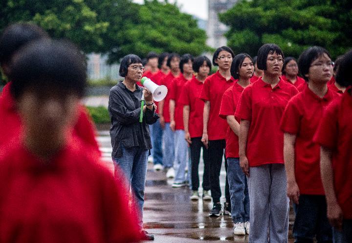 张桂梅督促学生好好锻炼身体。新华社记者 江文耀 摄