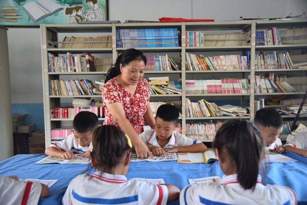 黄俊琼指导孩子们开展课外阅读。新华社记者 骆飞 摄