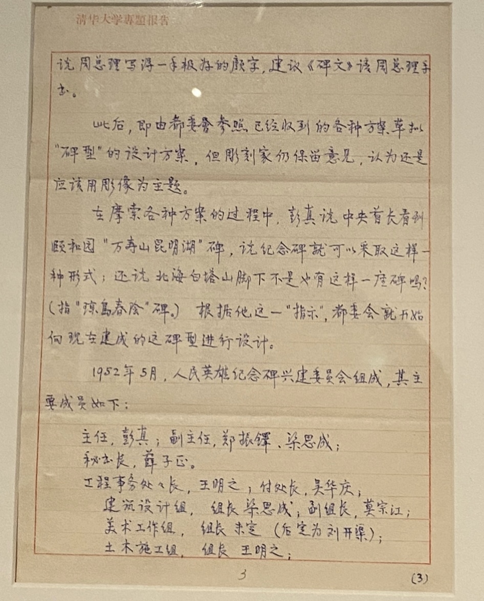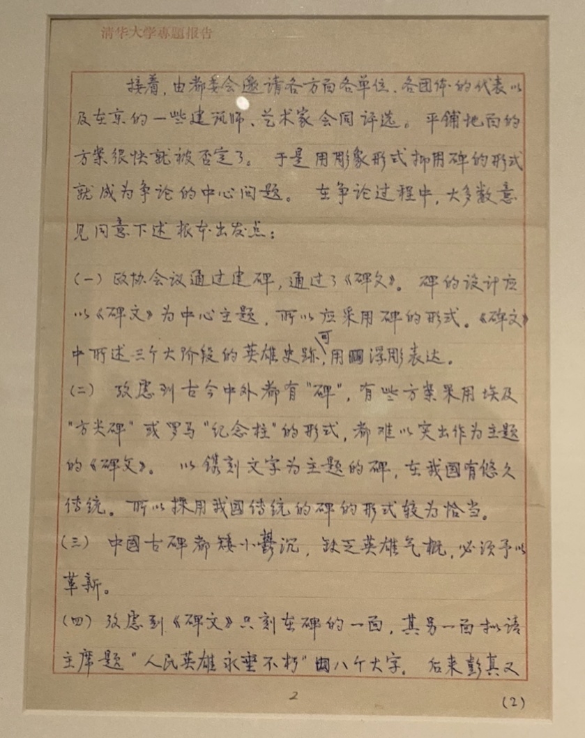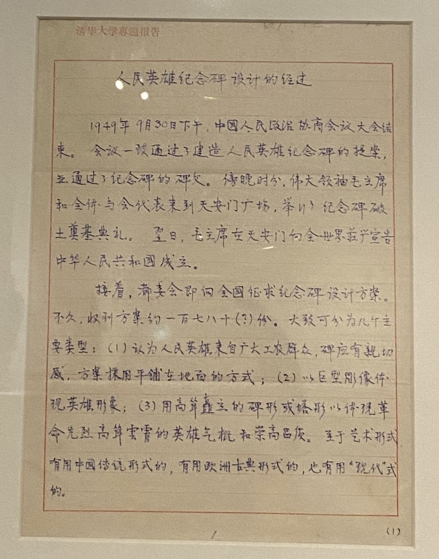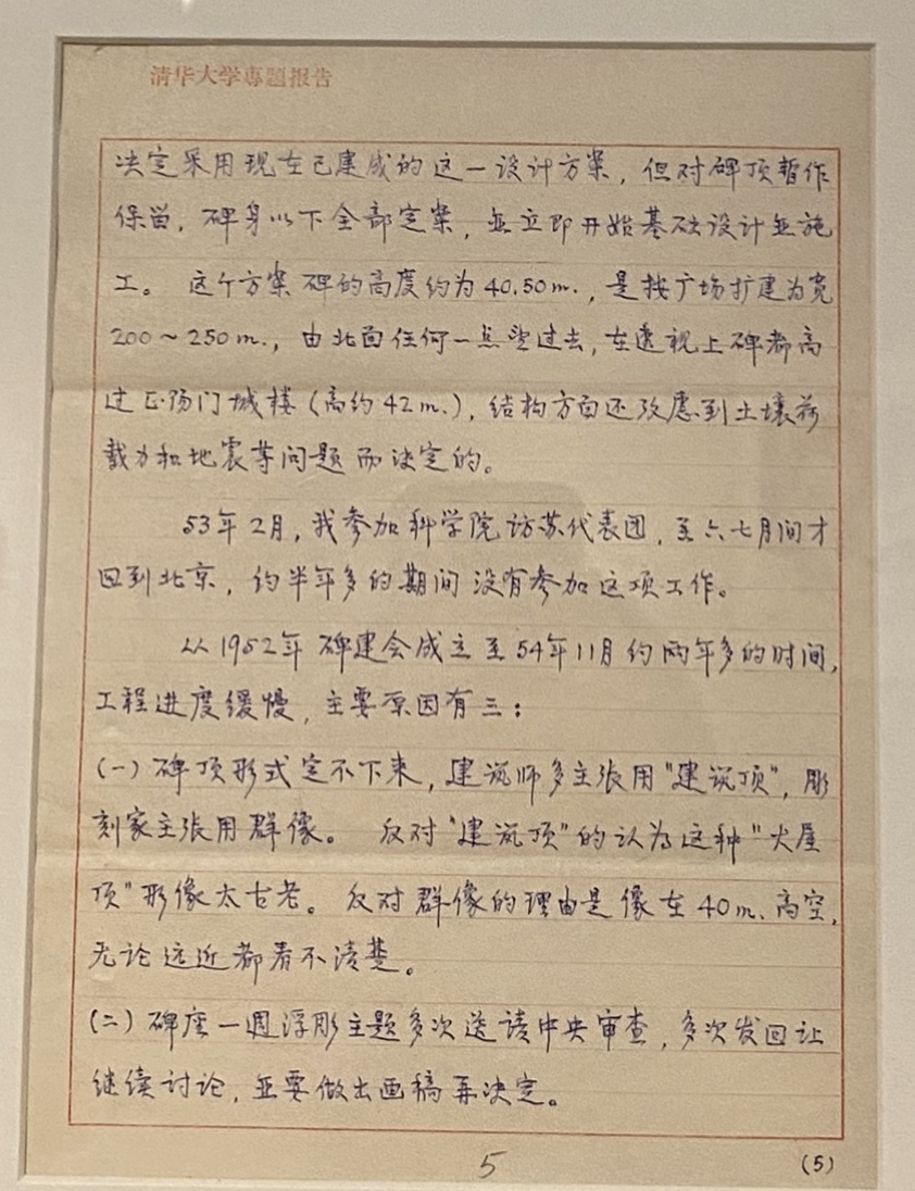 滑动查看梁思成《人民英雄纪念碑设计的经过》一文手稿 ↓