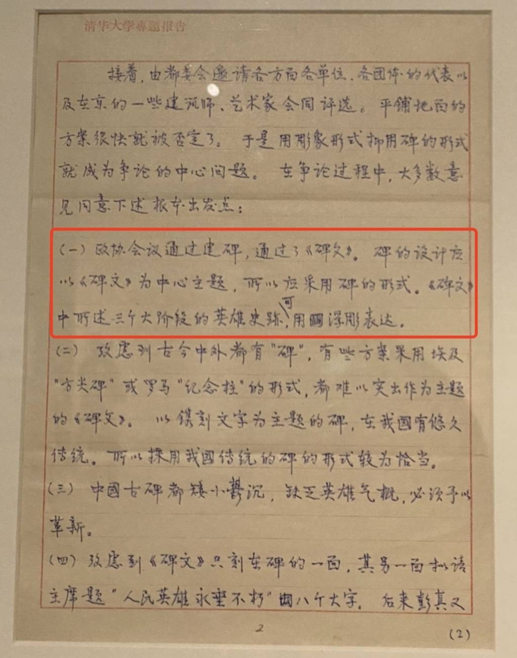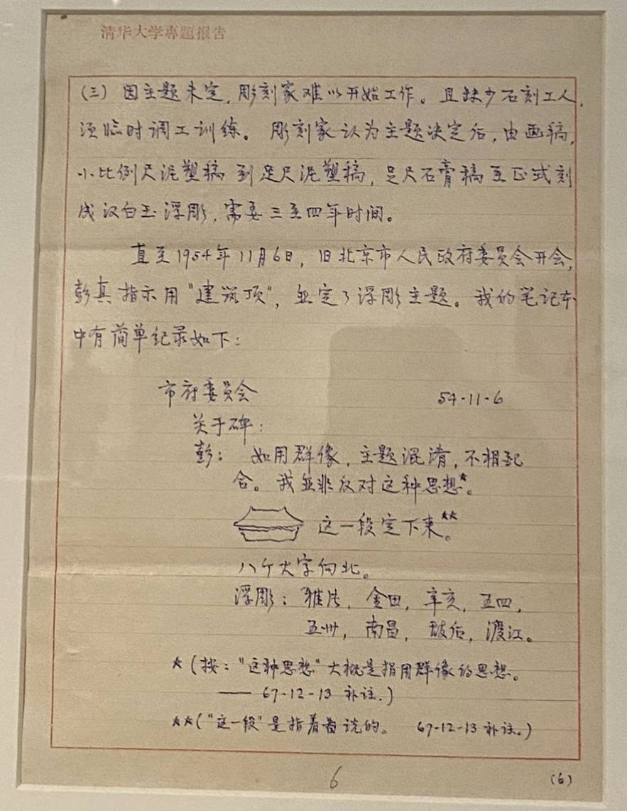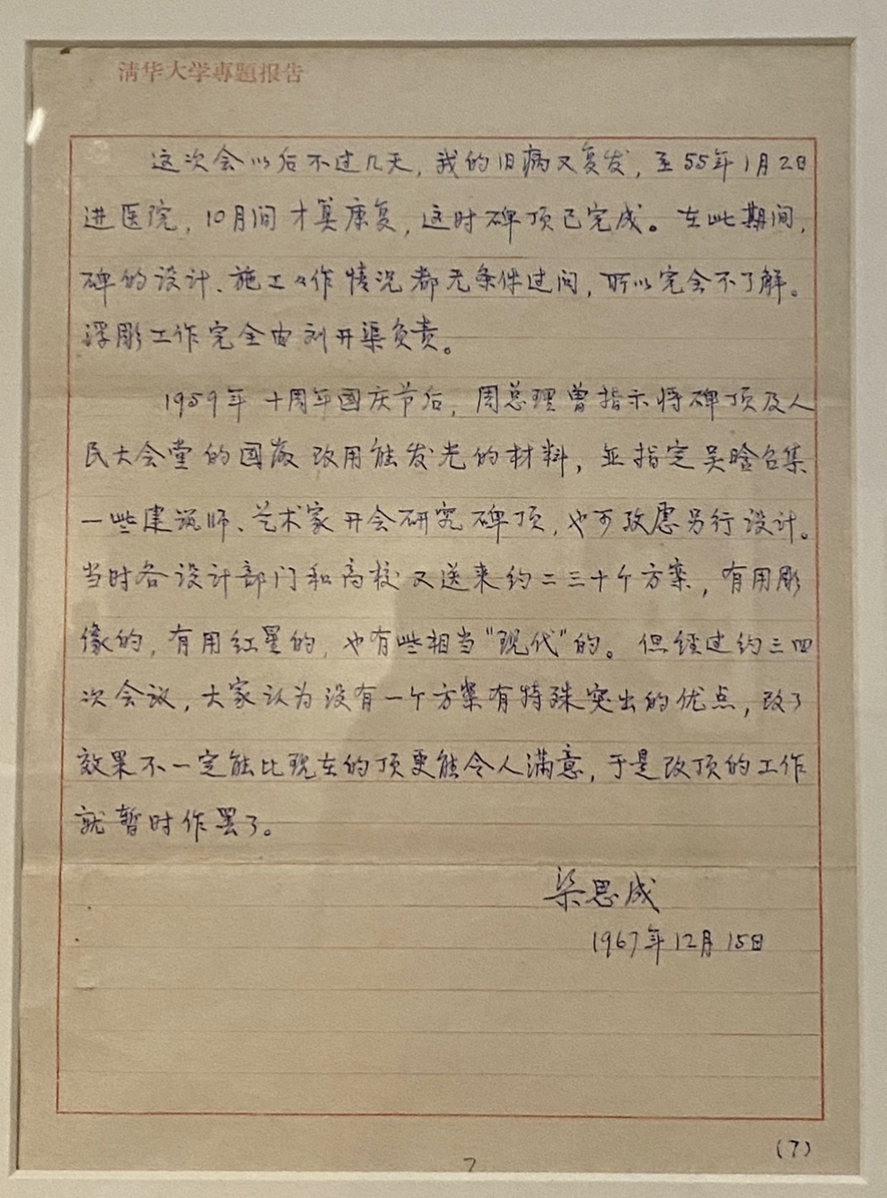 滑动查看梁思成《人民英雄纪念碑设计的经过》一文手稿 ↓