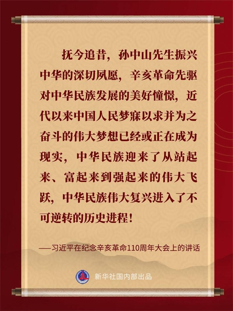 习近平在纪念辛亥革命110周年大会上的讲话金句