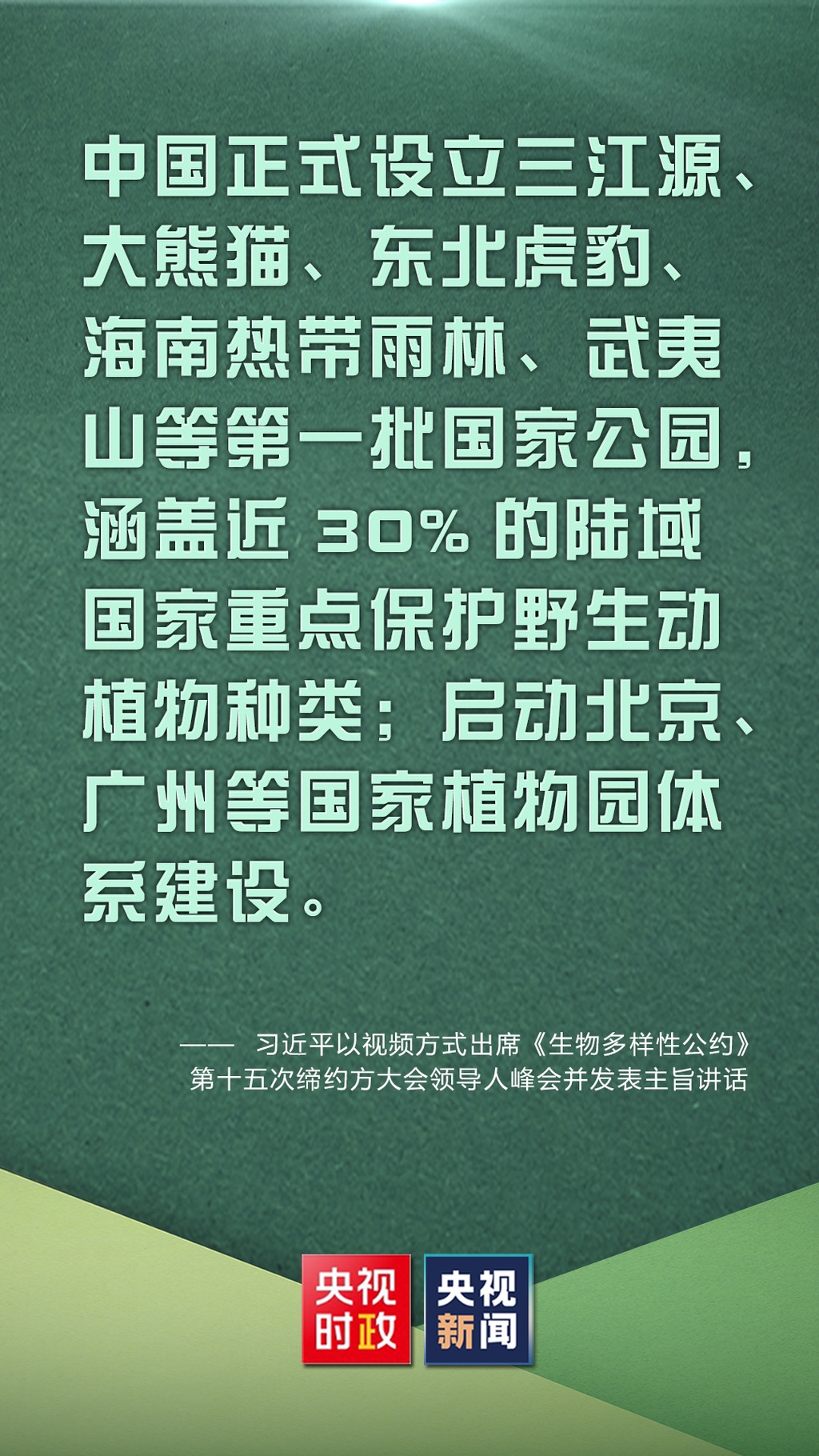 国家主席习近平12日下午以视频方式出席在昆明举行的《生物多样性公约》第十五次缔约方大会领导人峰会并发表主旨讲话。
