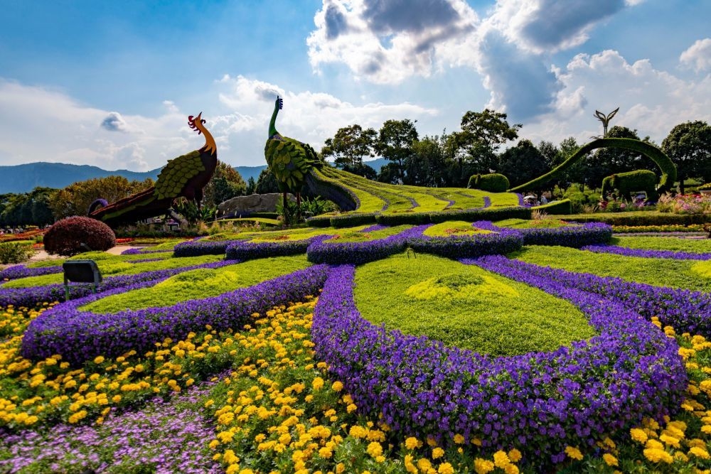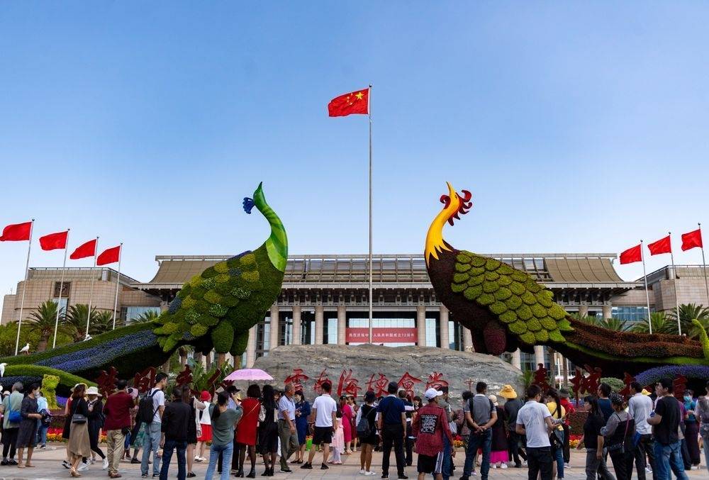 ↑10月2日在昆明市海埂会堂前拍摄的立体花坛。新华社记者 陈欣波 摄