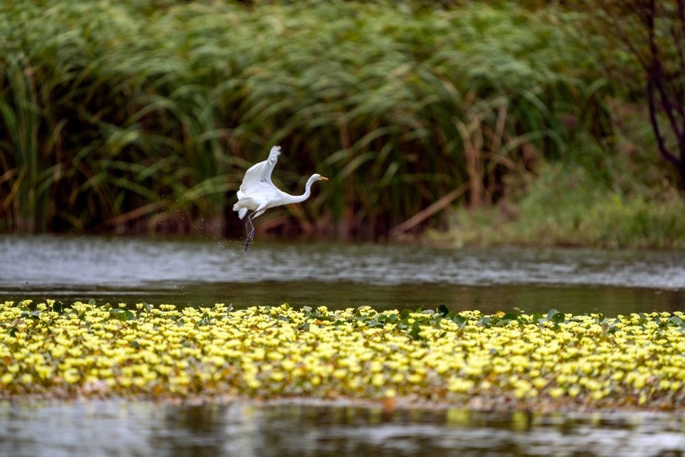 ↑水鸟在昆明宝丰半岛湿地嬉戏(9月25日摄)。 新华社记者 江文耀 摄