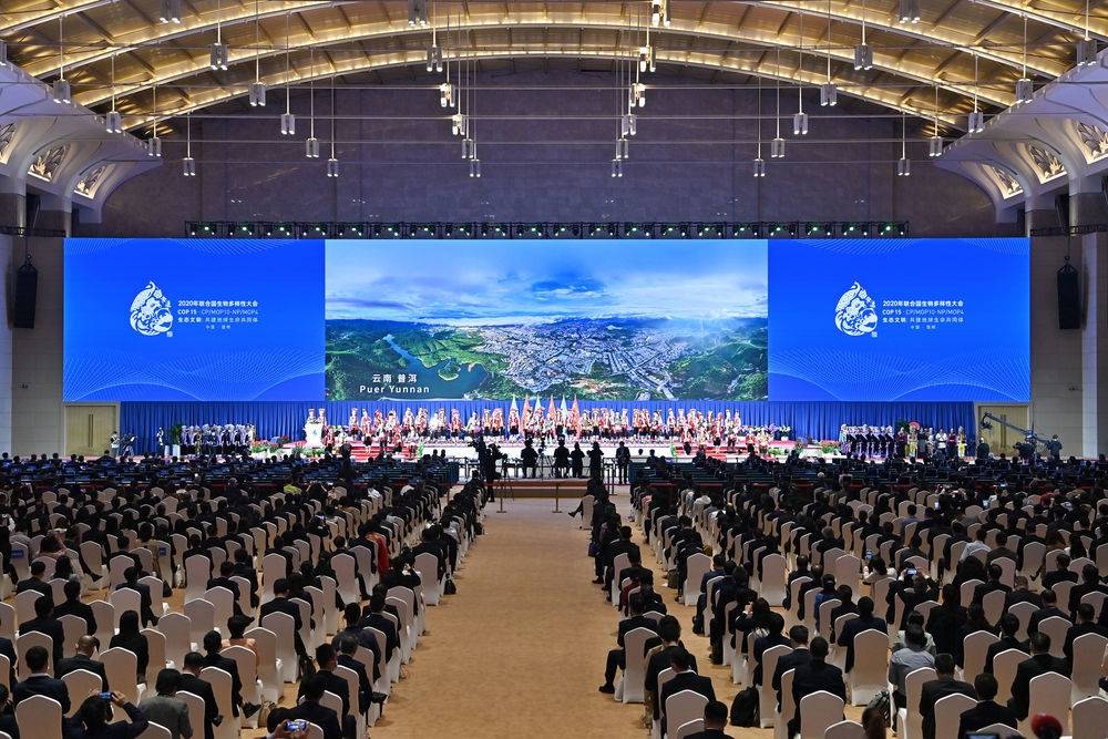 ↑10月11日,《生物多样性公约》第十五次缔约方大会在云南昆明开幕。这是开幕式上的云南民族特色演出。新华社记者 李鑫 摄