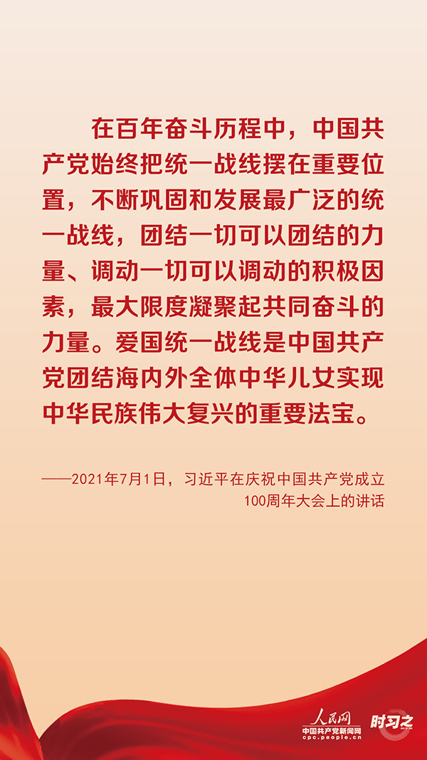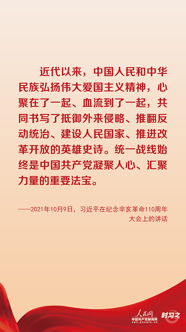 在2021年10月9日上午召开的纪念辛亥革命110周年大会上,习近平总书记发表重要讲话时指出:“统一战线始终是中国共产党凝聚人心、汇聚力量的重要法宝。”