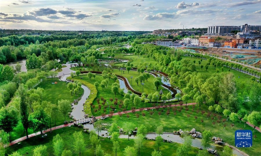 这是陕西省榆林市榆溪河生态长廊(2020年5月24日摄,无人机照片)。新华社记者 陶明 摄