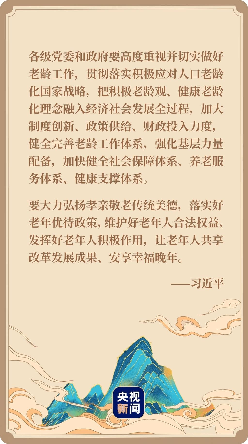 今年重阳节来临之际,习近平总书记对老龄工作作出重要指示,代表党中央祝全国老年人健康长寿、生活幸福。